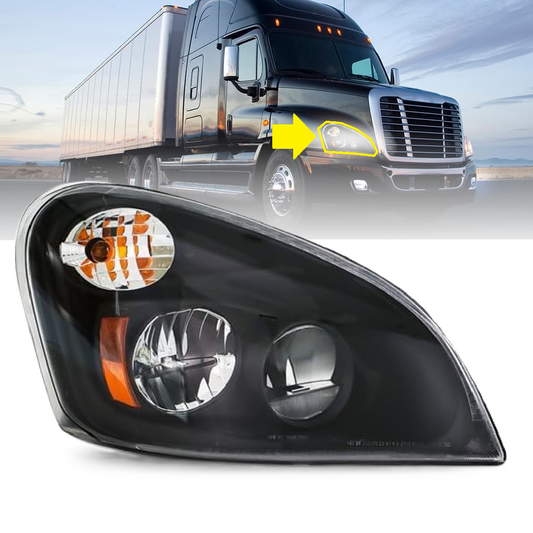 Freightliner Cascadia 2008-2017 Black Reflective Led Headlights, Replacement Headlamp DOT and SAE Approved-Left Driver Side