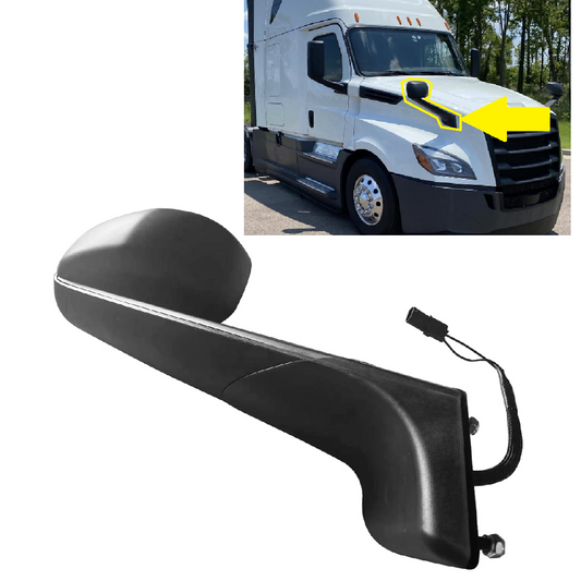 Freightliner Cascadia 2018+ Hood Mirror with Heated Glass, Black Cover Left Driver Side