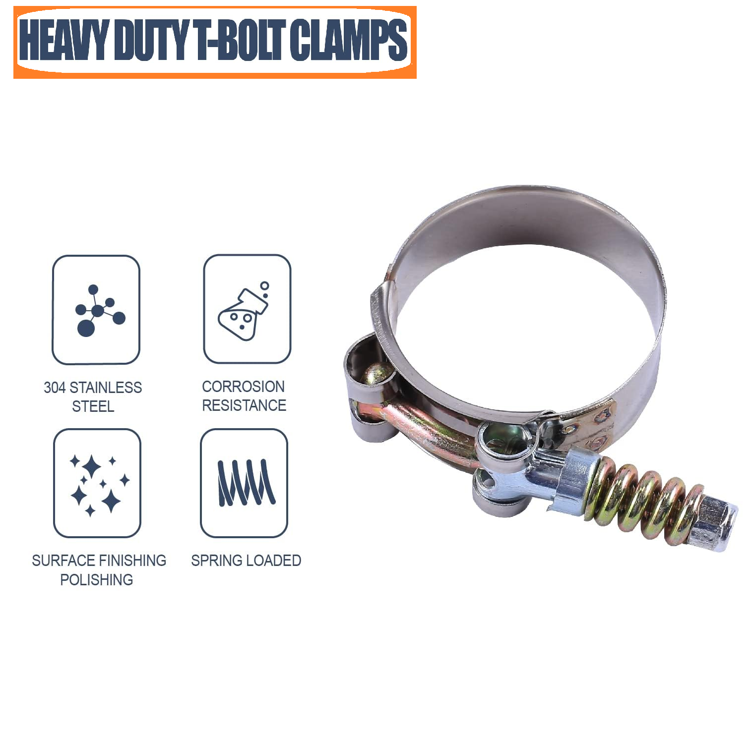 Stainless Steel Spring Loaded T-Bolt Hose Clamps 102–110mm (4" – 4 5/16") for Semi Truck & Trailer