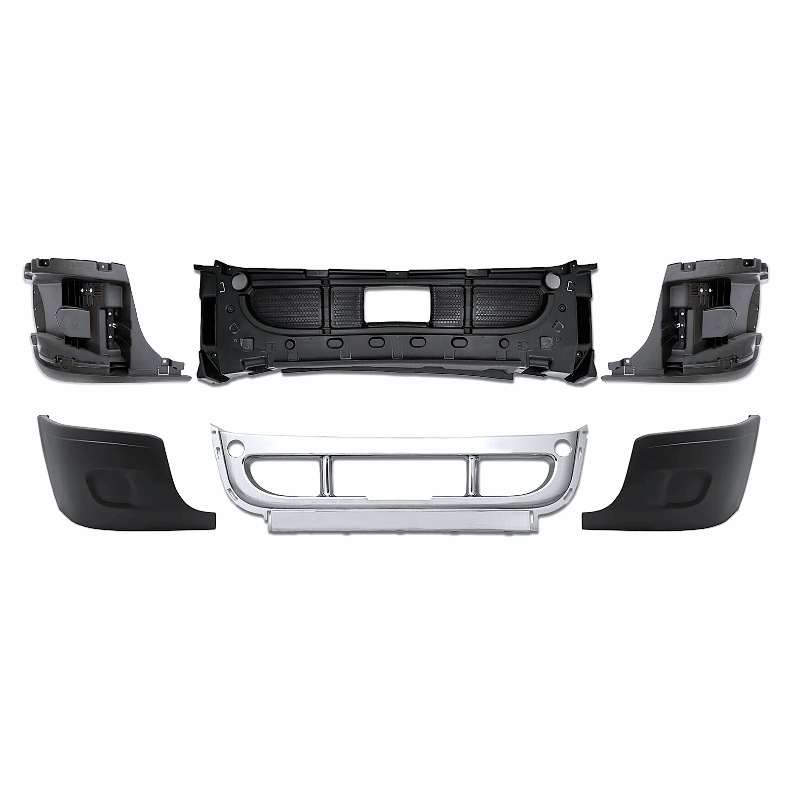 Freightliner Cascadia 2008-2017 Complete Front Bumper - Chrome Trim, Solid Design (No Fog Lamp Cutout)