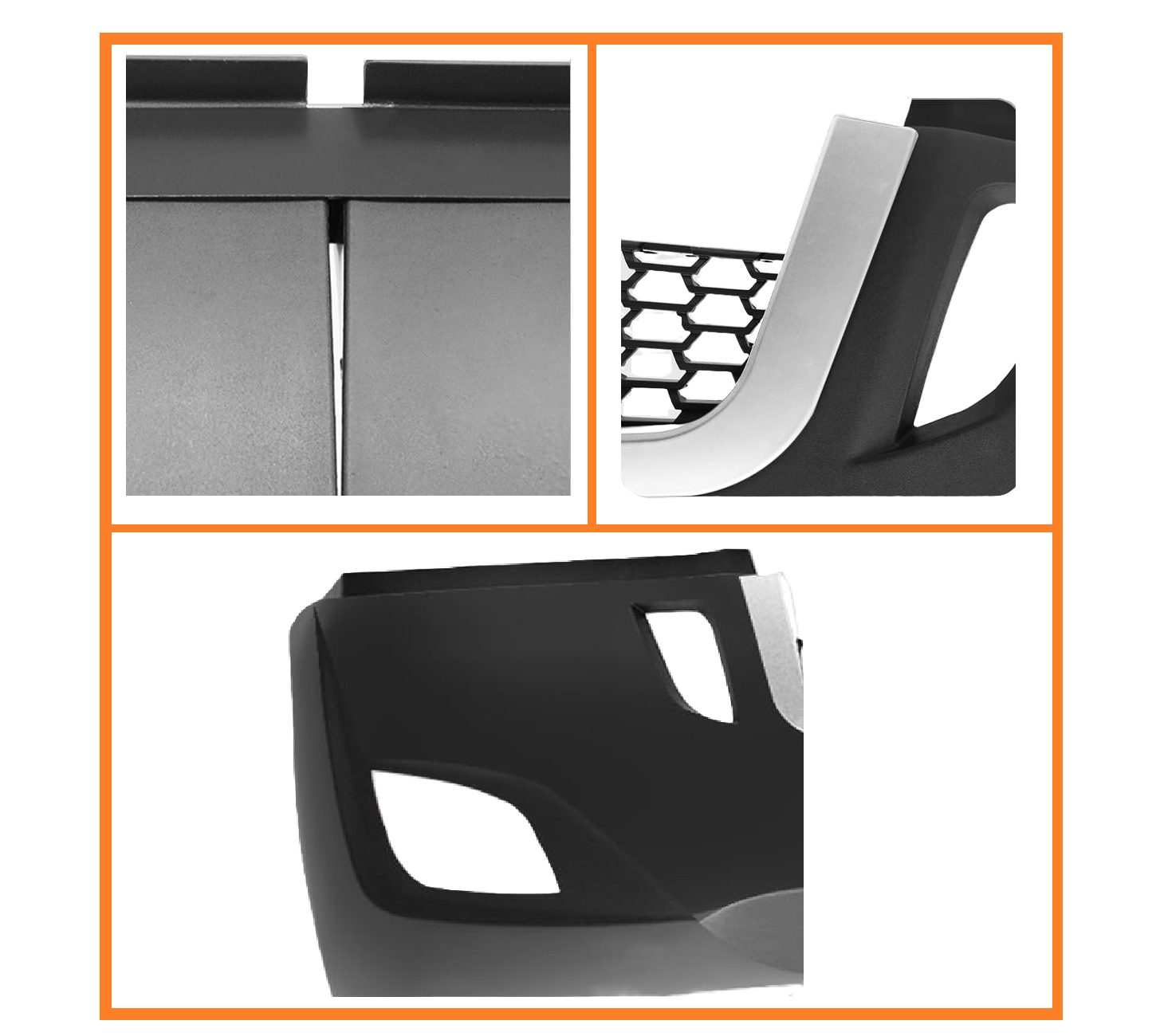 - Complete Front Bumper with Chrome Center Trim, Radar Cover and Fog Light hole