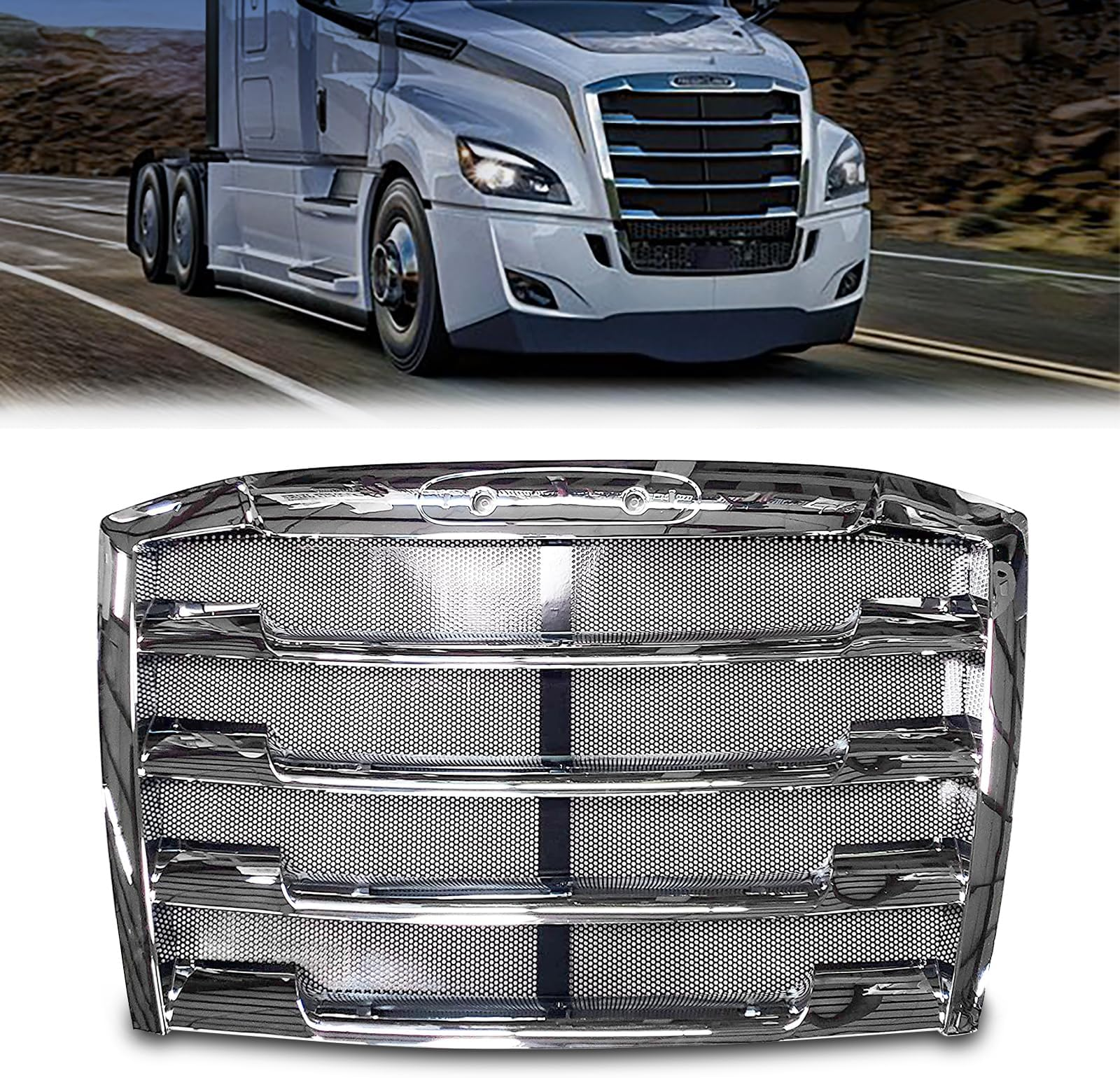 - Direct Fit Chrome Grille w/ Bug Screen for Freightliner Cascadia