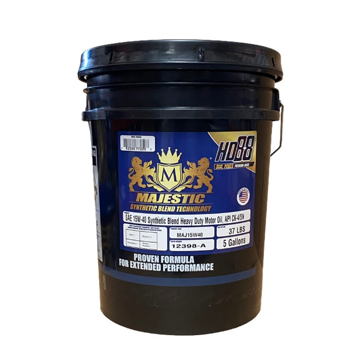 MAJESTIC Heavy Duty Synthetic Blend 15W-40 Motor Oil is a premium lubricant designed for heavy-duty diesel and gasoline engines. Formulated to meet API CK-4 and SN standards, this high-performance oil offers exceptional wear protection, thermal stability, and engine cleanliness. Ideal for large vehicles and commercial use, this 5-gallon bucket ensures long-lasting performance and value.