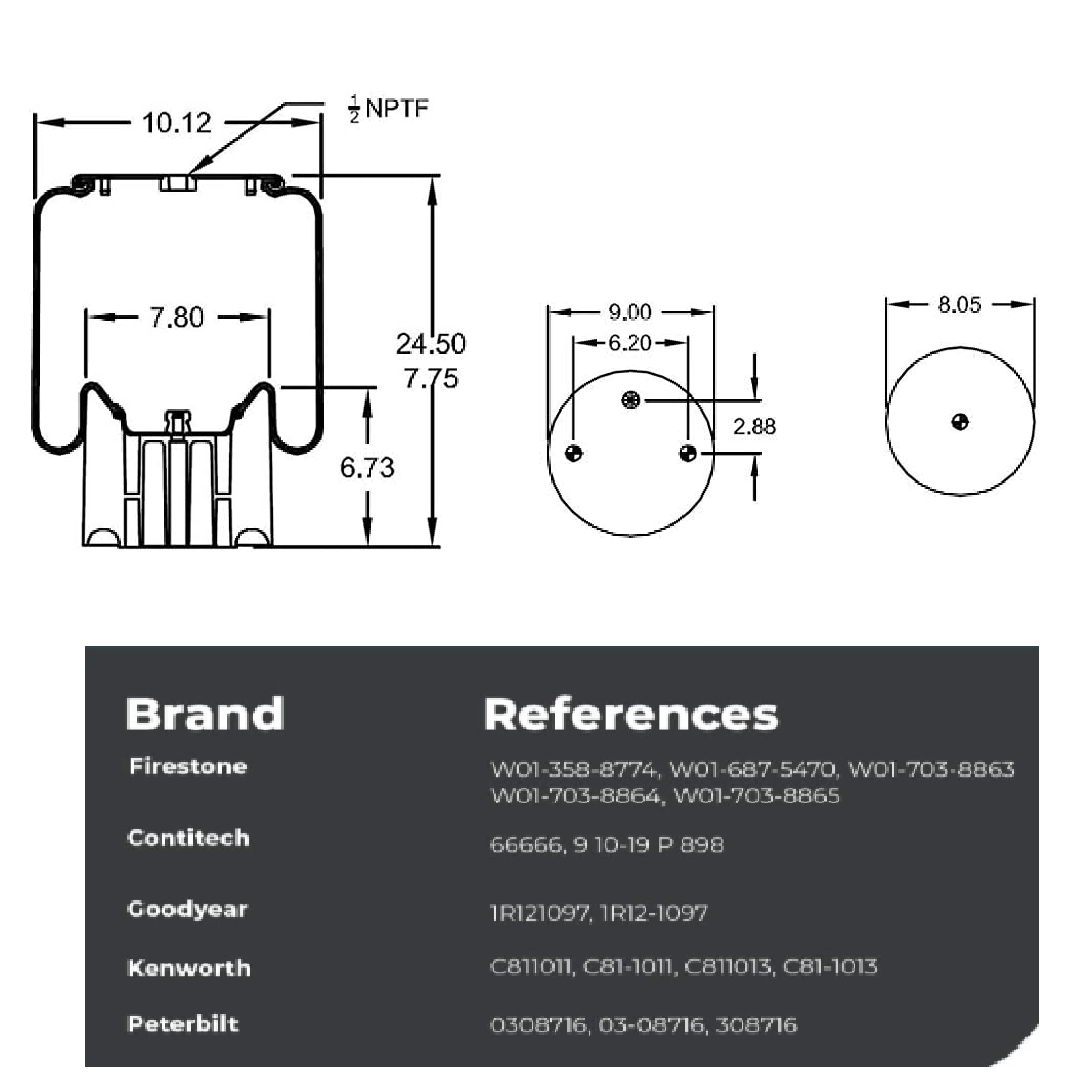 Air Spring Bag For Peterbilt And Kenworth Trucks – Replaces Firestone 8864, W01-358-8864, Peterbilt C81-1013, C811013, Goodyear 1R12-1097