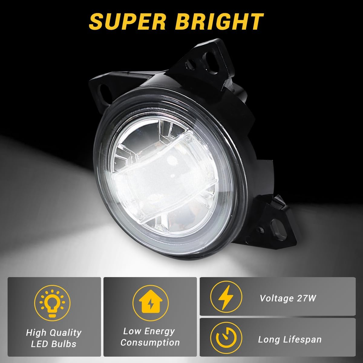 LED Fog Lights Assembly for Kenworth T660 2013-2021, Peterbilt 579 2013-2022, Peterbilt 587 2013-2022, Black Housing Fog Lamp