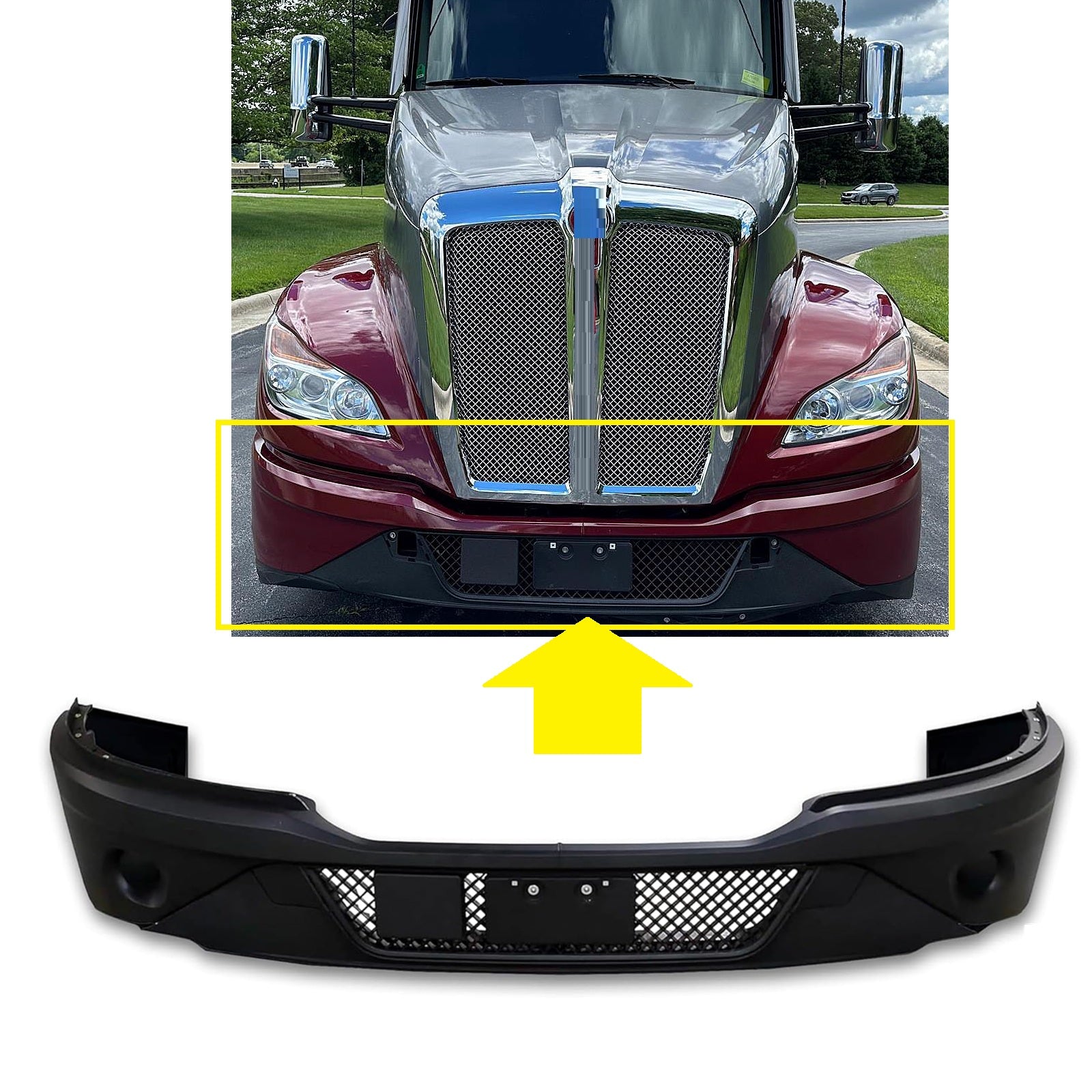 Kenworth T680 NEXT GEN 2022+ Bumper complete Black paint without fog light hole