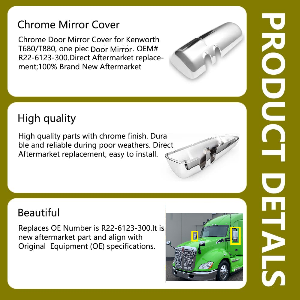 KENWORTH T880 T680 2013-2021 SIDE Door MIRROR COVER CHROME Left Driver Side
