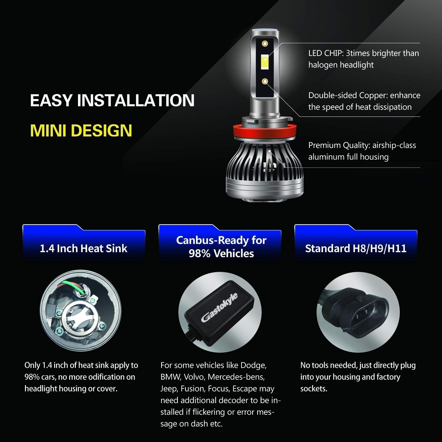- Easy Installation:The durable plug-and-play design is compact and typically installs in few minutes. No tools needed, just directly plug into your housing and factory sockets.