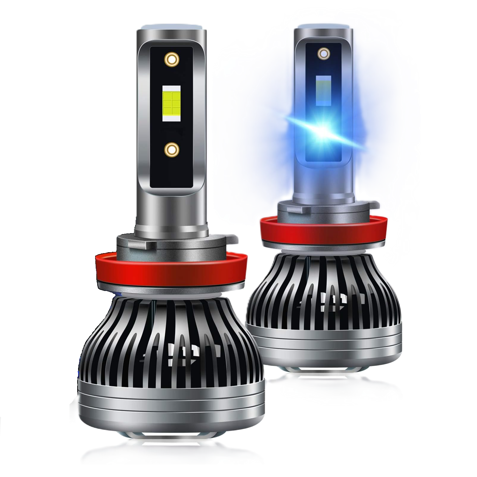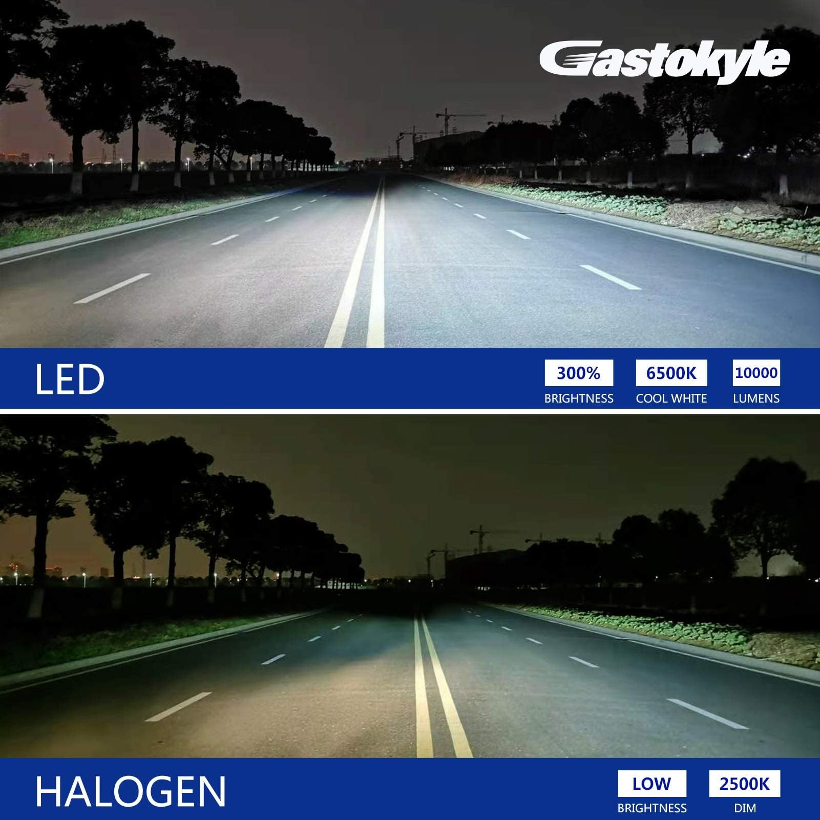 - Super-Bright: 300% brighter than halogen headlight bulbs. The LED headlight bulb (Double-sided) Producing 10000 lumen output per set, with output 5000lm per light for safety driving at night, super focused beam pattern design provides wider and farther lighting range, 6500K xenon white, far more than the halogen lamp.