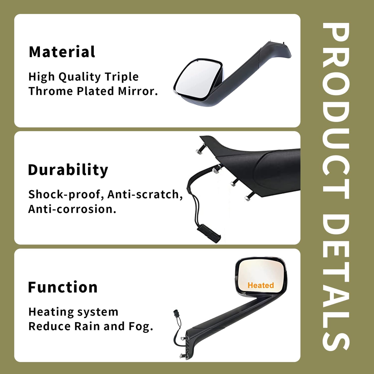 Color Painting (Black) Mounting Type Hood Mount Material Plastic Special Feature Heated Operation Mode Power Auto Part Position Front, Right/ Passenger Side