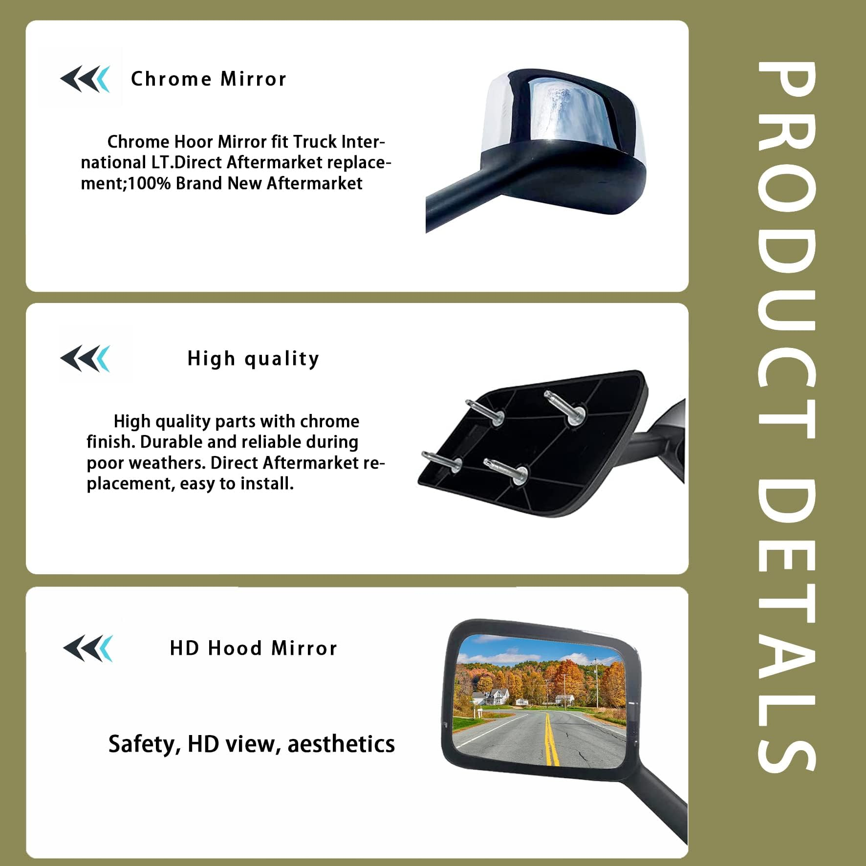 International 2018-2021 LT625 Hood Mirror with Arm Chrome Left Driver Side