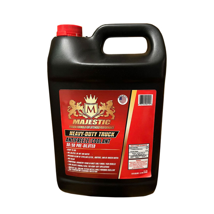 Majestic 50/50 Prediluted Red Antifreeze is a pre-mixed coolant designed for reliable engine protection. Formulated with ethylene glycol, this ready-to-use solution eliminates the need for additional dilution, ensuring convenience and immediate usability. It provides freeze and boil-over protection while preventing corrosion in radiators and engine systems.