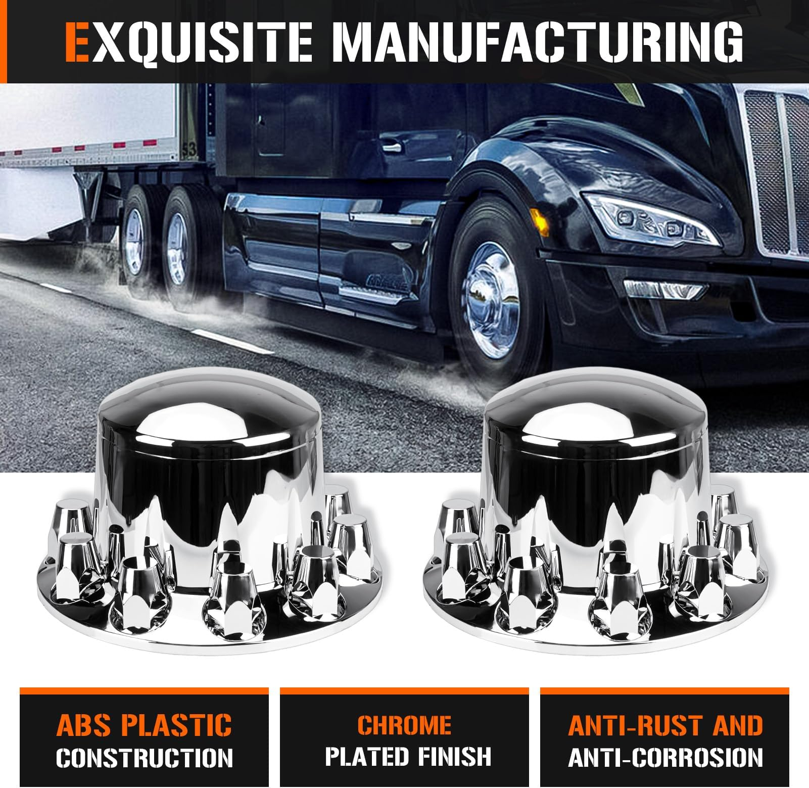 Rear Axle Wheel Cover 33mm Screw-on Lug Nut Cover for Semi Truck, Chrome Plated ABS Plastic, Universal Fit