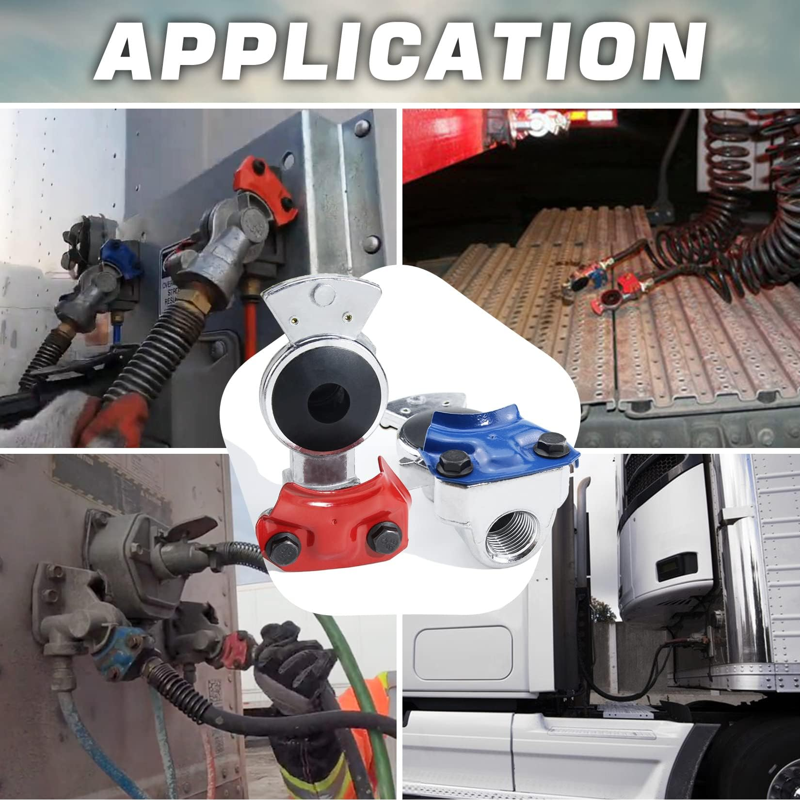Glad Hands Kit with Rubber Seals, Aluminum Glad Hand Universal Red Blue Emergency Service Gladhand Set for Semi Trucks Trailers Tractors Air Line