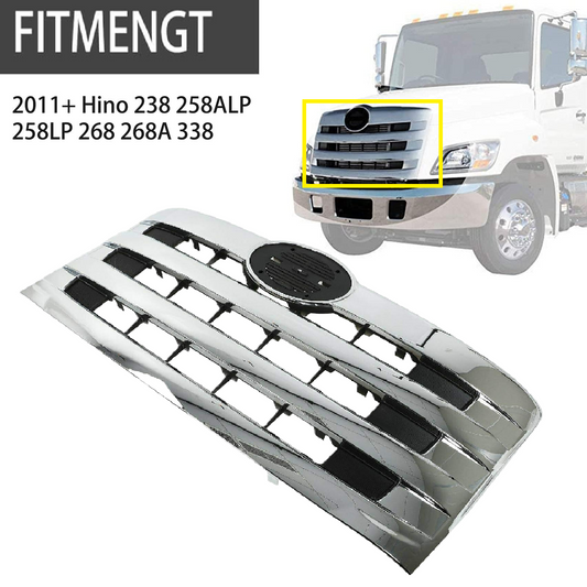 适用于 2011-2016 款 Hino 238 268 338 的前镀铬格栅,镀铬水平条形主格栅,镀铬前格栅替换件号:2062665632